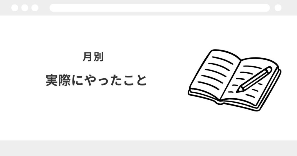 | 月 | やったこと | 使った教材 | 机に向かう時間 |